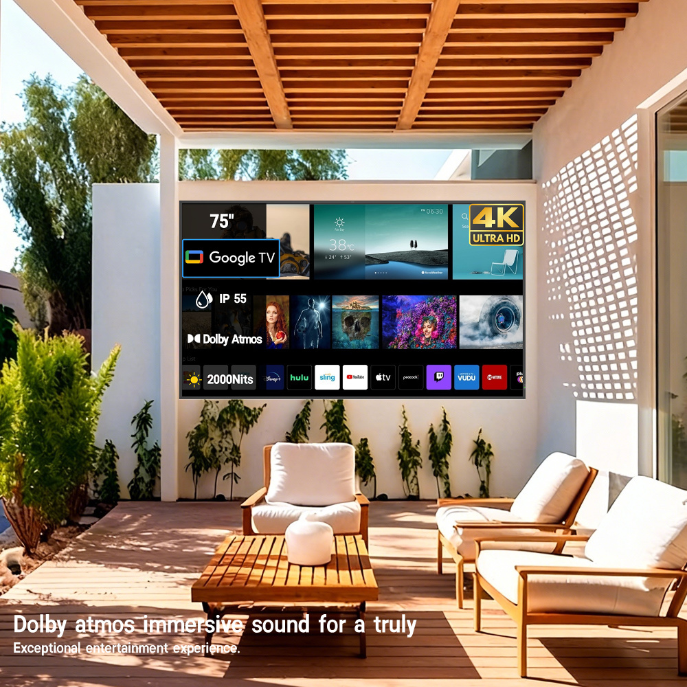 Wir stellen unseren wasserdichten Outdoor-Fernseher mit Google TV vor, ein intelligentes kommerzielles Display, das für den Einsatz im Freien entwickelt wurde und nahtlose Smart-Funktionalität bietet. Ausgestattet mit einem sonnenlichtlesbaren Display mit 1500-3000 Nits sorgt dieser Outdoor-Fernseher für lebendige, klare Bilder selbst bei direkter Sonneneinstrahlung, während das integrierte Google TV-System die Inhaltsverwaltung und App-Integration vereinfacht – was ihn zur idealen Wahl für Unternehmen macht, die eine intelligente, langlebige Outdoor-Werbelösung suchen.